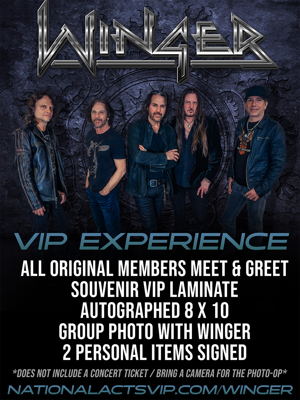Please be aware that neither WINGER nor NATIONAL ACTS maintain any affiliation with the venue at which the band's performance is scheduled. The Meet and Greet packages are exclusively administered by NATIONAL ACTS on behalf of the band. Consequently, the venue will not possess any information regarding the Meet and Greet packages offered by the band. For inquiries concerning your Meet and Greet package, please direct your queries to National Acts HERE.